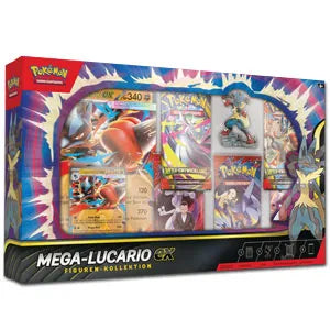 Erhalte ausserdem eine detaillierte Figur, die Mega-Lucario in Aktion zeigt, sowie einen Stapel Boosterpacks mit noch mehr grossartigen Pokémon.